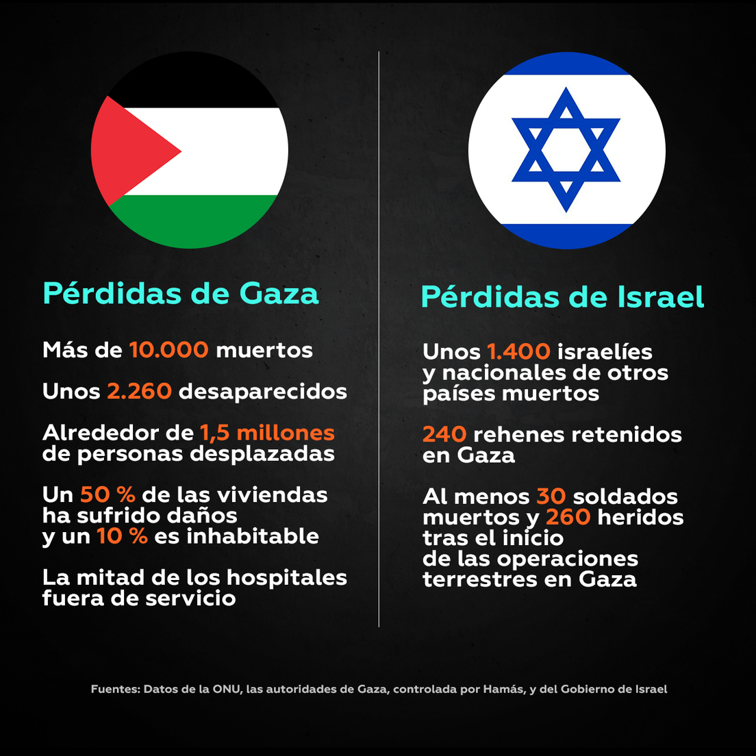 En cuanto a las bajas militares, las FDI confirmaron la muerte de 30 efectivos desde que comenzaron las operaciones terrestres, mientras que al menos 260 soldados han resultado heridos, detalla The Jerusalem Post.
