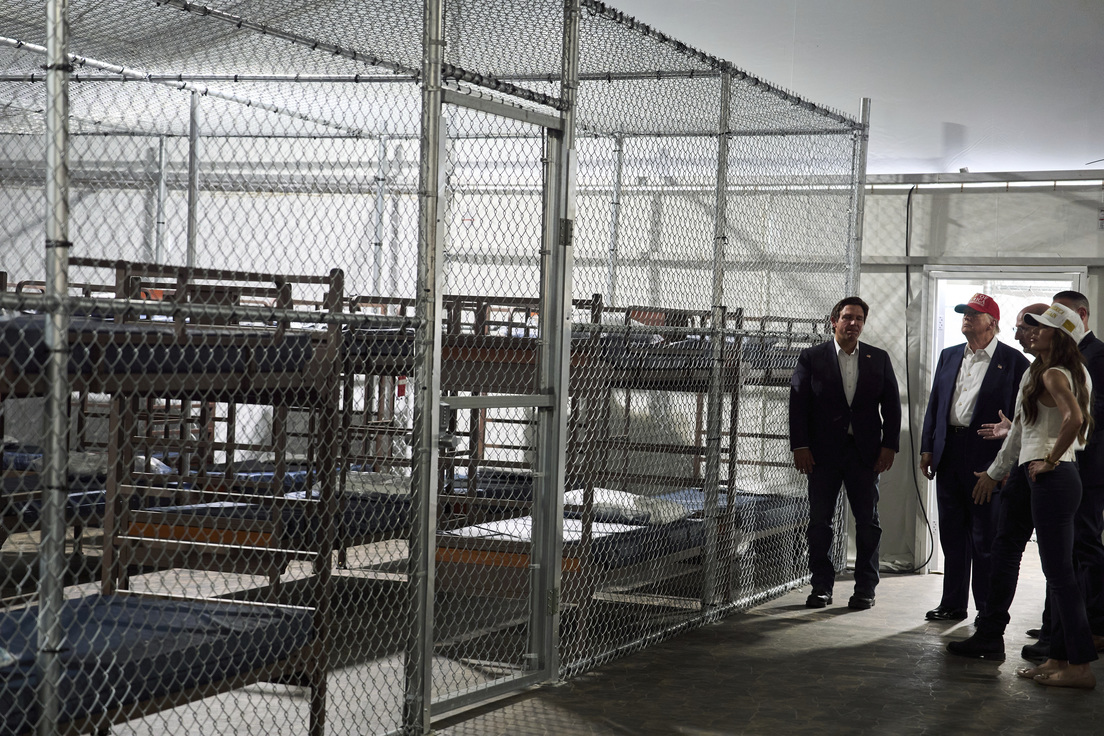 Apenas unos días después de que el presidente de EE.UU., Donald Trump, inaugurara la prisión para migrantes conocida como 'Alligator Alcatraz', en el estado de Florida, ya han salido denuncias de las condiciones inhumanas en las que se encuentran los primeros detenidos trasladados a ese lugar.