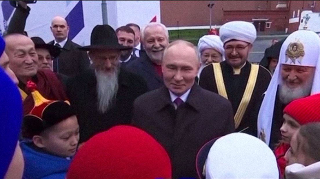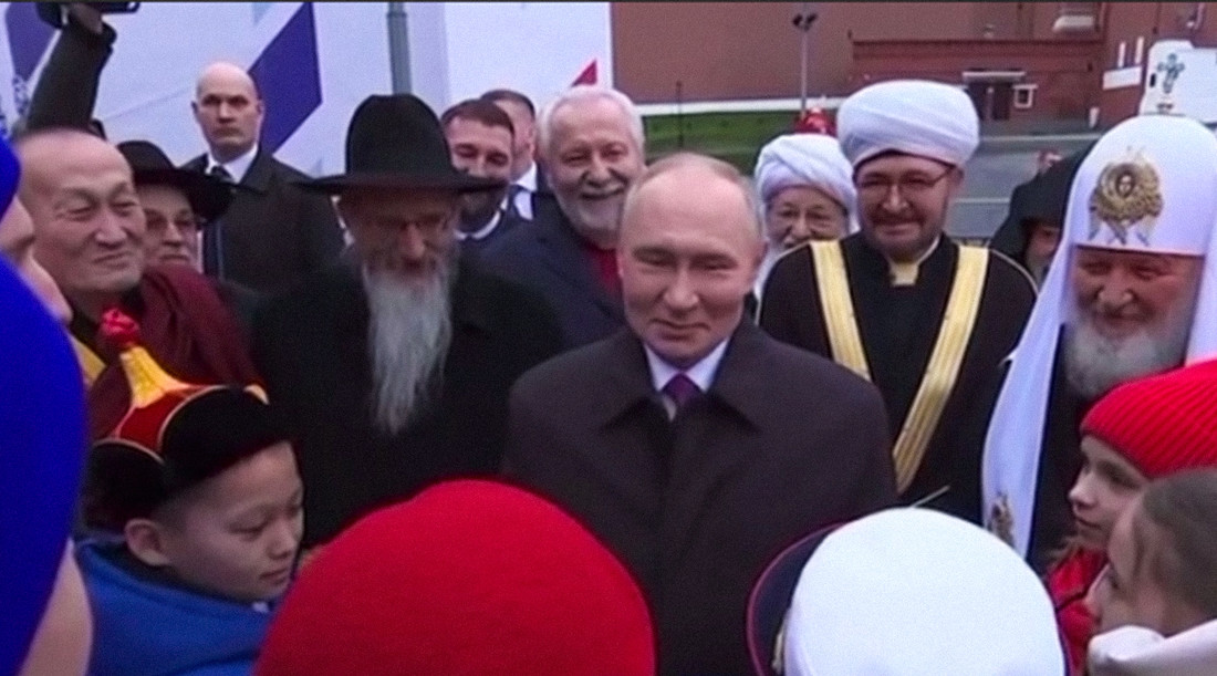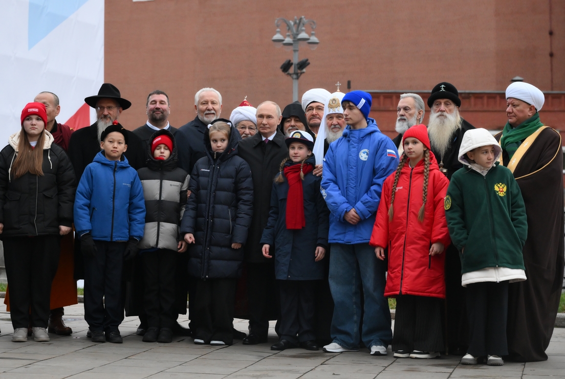 En el Día de la Unidad Nacional, el presidente ruso, Vladímir Putin, junto con representantes de confesiones religiosas, organizaciones públicas y juveniles, depositó flores en el monumento a Kuzmá Minin y Dmitri Pozharski en la Plaza Roja de Moscú.