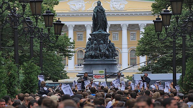 En San Petersburgo tuvo lugar otra convocatoria multitudinaria que tampoco estaba autorizada. Medios locales informaron sobre varios arrestados.