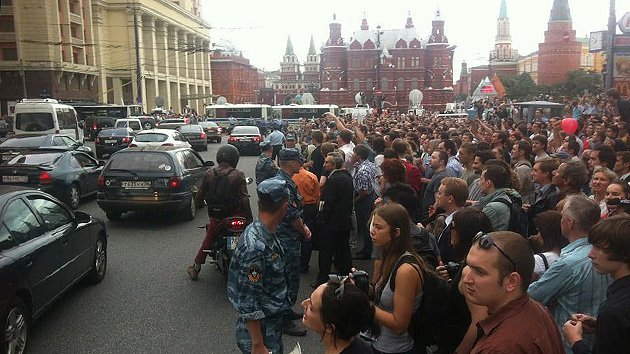 Como el evento no fue autorizado por la administración de la capital rusa, el acceso al lugar planeado de concentración, la plaza Manezhnaya, fue cerrado y la gente se concentró en las calles adyacentes. Las congregaciones más numerosas se registraron frente al Kremlin y la sede de la Duma Estatal (la cámara baja del Parlamento ruso). Algunos grupos de manifestantes intentaron cortar el tráfico en varias calles del centro de la capital, por lo que los agentes de seguridad se vieron obligados a impedir la violación de la orden. Según informa la agencia rusa de noticias ITAR TASS, al menos 100 personas fueron detenidas.