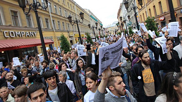 Simpatizantes del bloguero opositor Alexéi Navalny, sentenciado este jueves a cinco años de prisión, se han reunido en el centro de Moscú en una acción no autorizada para expresar su protesta contra la condena.