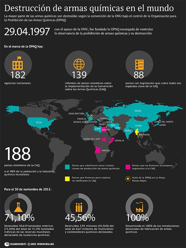 "Algunas armas químicas de Siria ya han sido destruidas", declaró el director general de la Organización para la Prohibición de Armas Químicas (OPAQ), Ahmet Üzümcü, que subrayó que "el Gobierno sirio coopera con nosotros". "Estamos trabajando para verificar la autenticidad de la información proporcionada por los sirios", dijo.