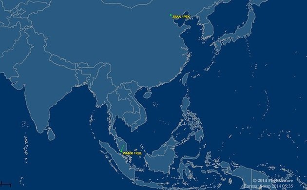 El avión desaparecido, que despegó del aeropuerto internacional de Kuala-Lumpur a las 00:41 hora local del pasado sábado, debía aterrizar en la capital china a las 06:30, pero desapareció del radar luego de entrar a espacio aéreo controlado por Vietnam. El último dato registrado del Boeing 777-200 es que viajaba a 700 metros de altura y a 500 km/h. "El vuelo llevaba 227 pasajeros (incluidos dos niños) y 12 miembros de la tripulación", especificó la compañía aérea.