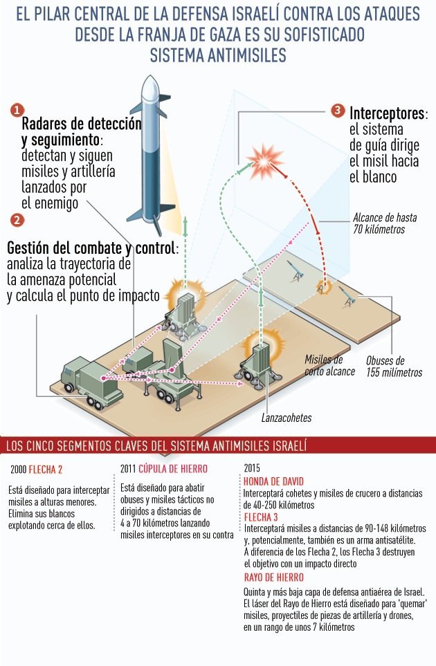 La Cúpula de Hierro es un sistema de defensa israelí de alta tecnología. Está destinado a interceptar misiles y obuses disparados desde distancias de entre 4 y 70 kilómetros.
