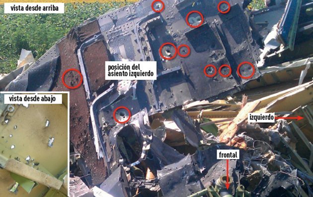 "El patrón de daño observado en el fuselaje y la cabina de la aeronave fue consistente para concluir que fue provocado por un gran número de objetos de alta energía que penetraron la aeronave", señala el documento.
