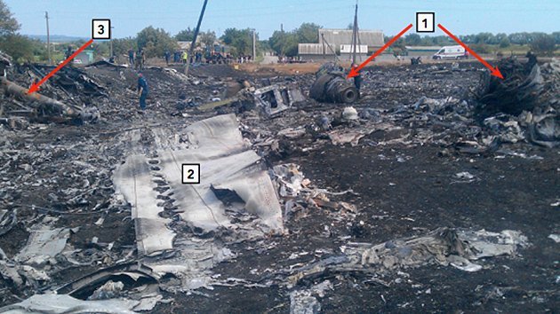 El informe preliminar que incluye los primeros resultados de los registradores de vuelo y datos de satélites y radares, indica que numerosos objetos penetraron en el avión siniestrado. Por otra parte, como reza el informe, no se ha registrado ningún impacto en las cajas negras del avión malasio.