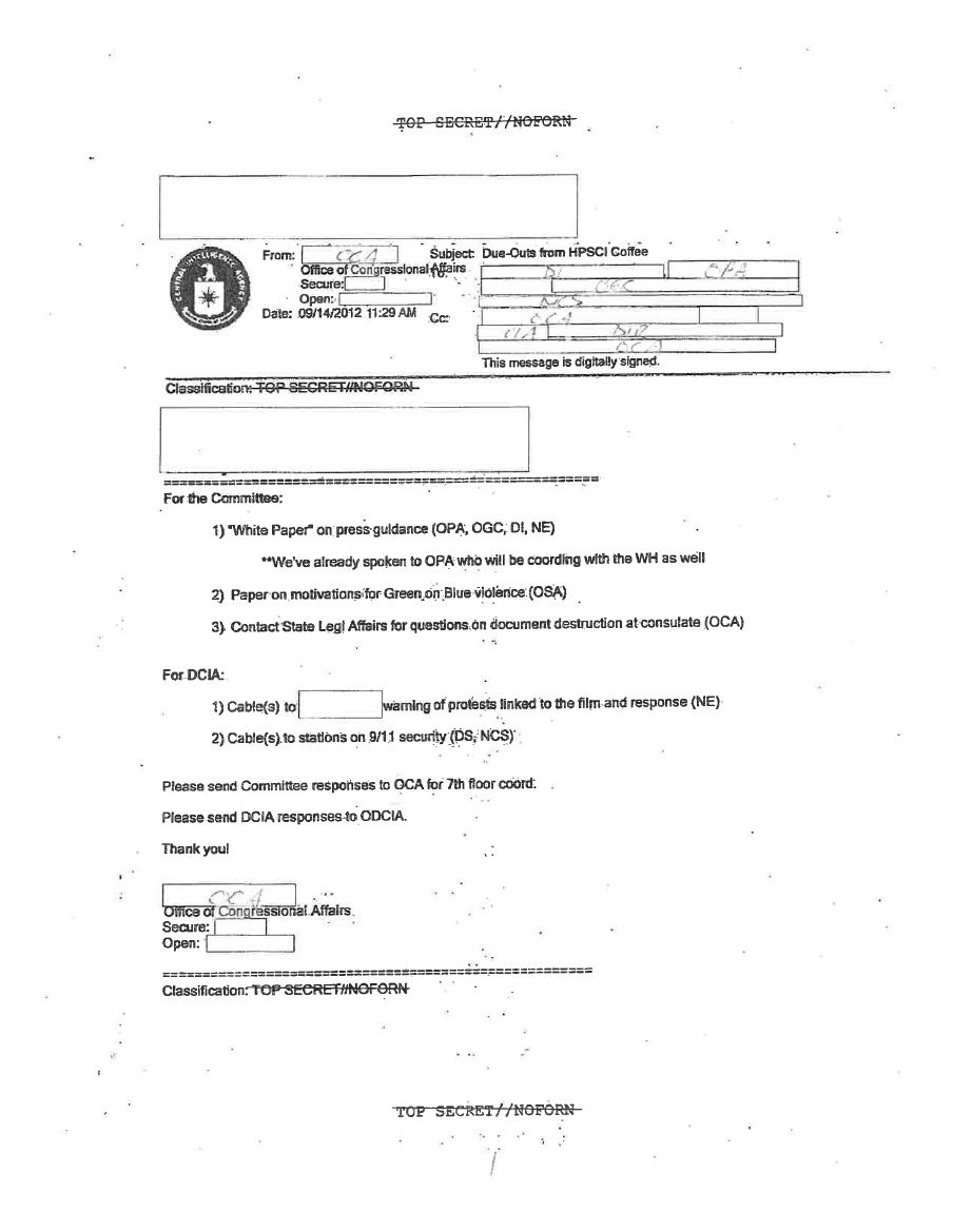 Los correos electrónicos, redactados originalmente por la CIA, fueron solicitados por los miembros del Comité de Inteligencia de la Cámara de Representantes. Tras la redacción original de los correos, analistas de la CIA hicieron una serie de cambios significativos, de acuerdo con fuentes de la Administración.