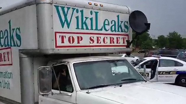 13:25 GMT: Una furgoneta de Wikileaks llega a la sala del tribunal.