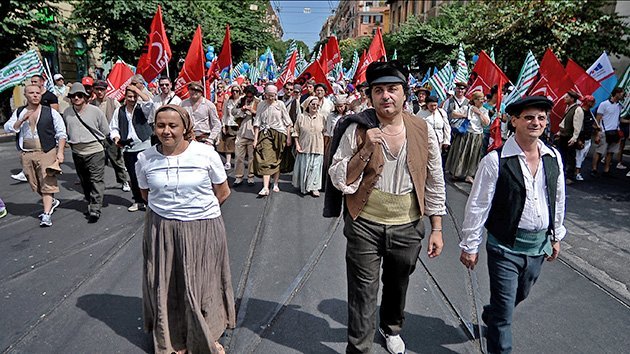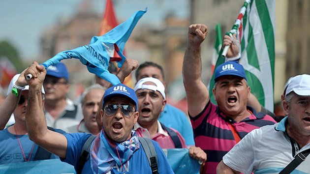 Decenas de miles de personas salieron a las calles de Roma para protestar contra el desempleo, que ha alcanzado el nivel máximo de la historia, y para exigir que el Gobierno emprenda alguna medida al respecto.