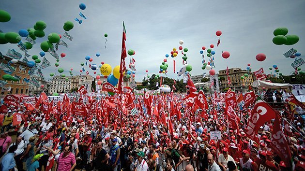 "No podemos aceptar estas promesas continuas que no se traducen en decisiones para un cambio de rumbo", dijo la secretaria general de la CGIL, Susanna Camusso, ante los manifestantes que acudieron a la plaza de San Giovanni de Roma.