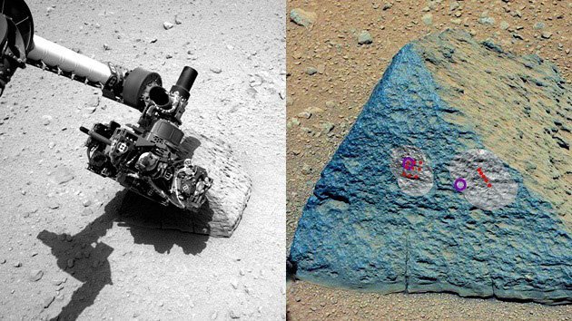 El robot Curiosity utilizó su potente láser para pulverizar una roca del tamaño de una pelota de tenis a fin de calibrar su correcto funcionamiento antes de emprender su primera misión de exploración en Marte en busca de minerales que puedan revelar secretos sobre el planeta rojo.