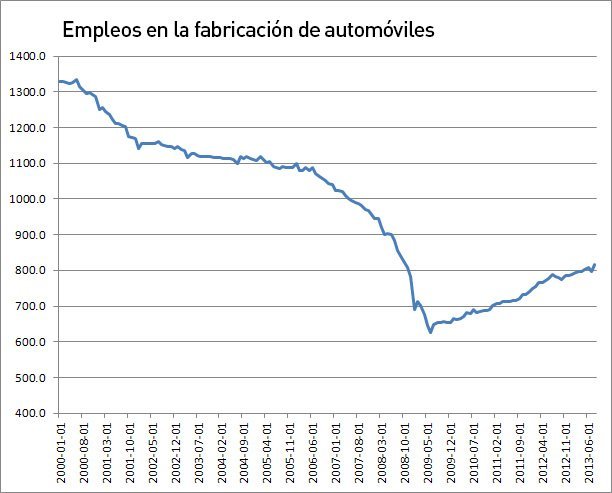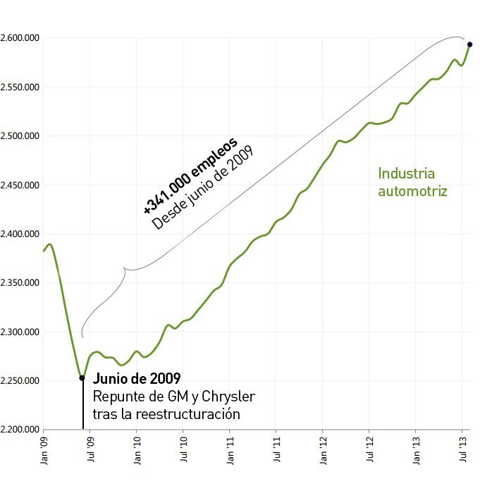 Según el informe, la ventaja del TARP se ha traducido en un aumento del número de empleos en la industria automotriz (como se aprecia en esta gráfica).
