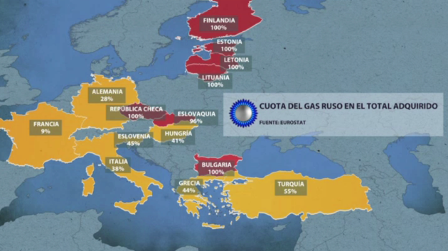 De momento, especialistas dejan claro que es muy poco probable que Kiev pueda encontrar una alternativa para sustituir el gas ruso en su totalidad. Europa por su parte tampoco tendrá muchas posibilidades de sobrevivir si un día busca rechazar el gas rusodebido a las tensiones políticas: a este territorio va a parar el 65% del gas que exporta Rusia. Países como Estonia, Letonia, Lituania, Bulgaria, República Checa y Finlandia compran solo gas ruso. En Eslovaquia el combustible azul ruso supone el 96% de las importaciones, en Grecia el 44%, en Hungría el 41%, en Alemania el 28% y en Italia el 38%.