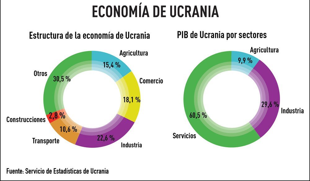 La austeridad programada se suma a la guerra civil en las regiones del sudeste de Ucrania, donde se centra la mayor parte de la industria del país. Los volúmenes de producción y de comercio caen, mientras el déficit presupuestario crece debido a la respectiva caída de ingresos por impuestos. En una situación tan inestable, se reducen drásticamente también las inversiones extranjeras. Además, este mismo año Ucrania deberá devolver a los donantes financieros 13.000 millones de dólares.