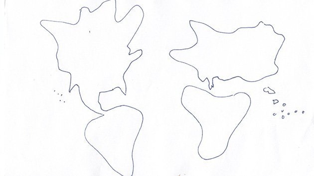 30 voluntarios de la Universidad estadounidense de Michigan dibujaron de memoria sin consultar con ningún atlas el mapa del mundo. Los 30 mapas dibujados fueron compilados en una imagen para ser comparados con fotos de la Tierra tomadas por satélite.