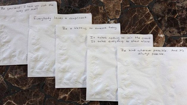 Consciente de las pocas probabilidades que tiene de ver a su hija crecer, Garth se ha dedicado a dejarle mensajes en forma de frases inspiradoras escritas en servilletas.