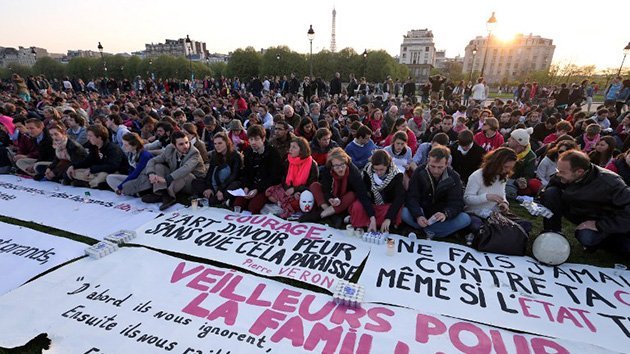 Al menos 45.000 personas salieron el 21 de abril a las calles de París para mostrar su rechazo al proyecto de legalización del matrimonio entre personas del mismo sexo y la adopción de niños por estas parejas.